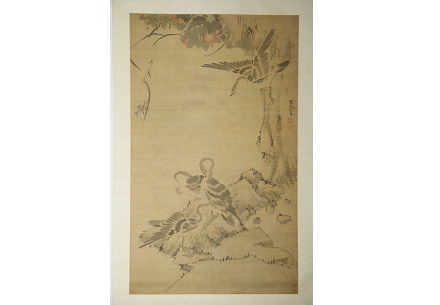 朱耷绢本设色芦雁荷花图轴