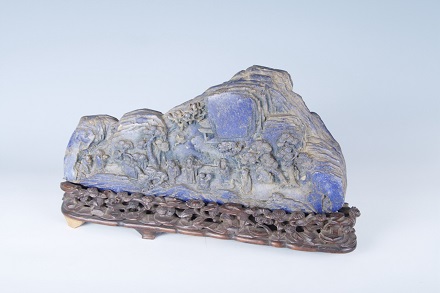 清青金石雕人物山子