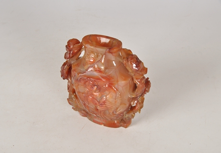 红玛瑙雕牡丹凤纹瓶