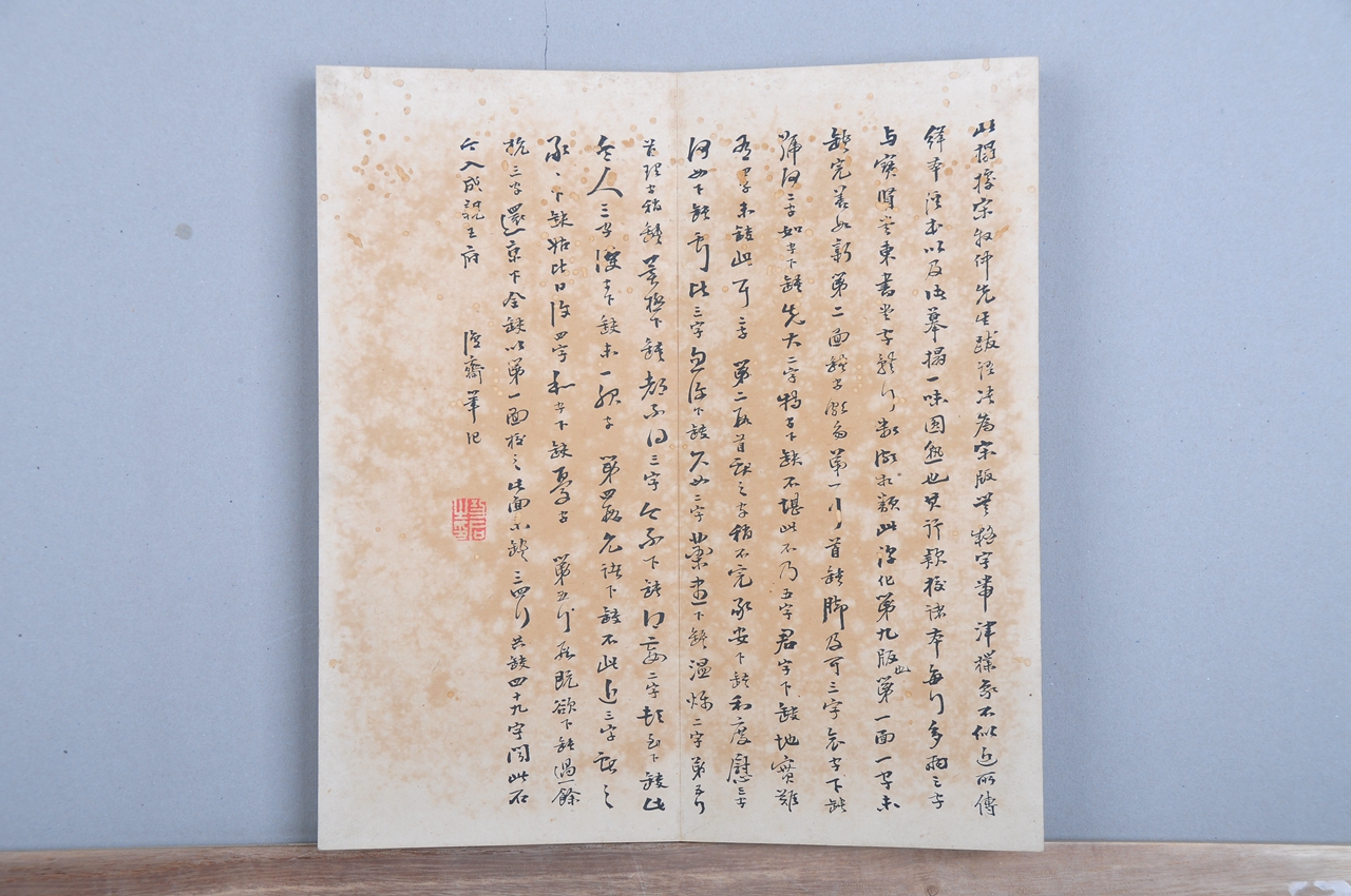 经考据比较,发现 拥有费甲铸本、肃府本、薛所蕴刻本等几个版本,部分有题跋、印章等珍贵信息。其中薛所蕴刻本历史上有著录,在我馆发现了实物;《淳化阁帖》薛氏补刻本最早记载于康熙杨宾《大瓢偶笔》卷六:顺治十七年,薛所蕴得卫源阁帖石,乃补刻二十九段,上有银锭扣,较肃府顾氏本俱胜。我馆藏薛刻本蝴蝶装,浓墨精拓,卷首钤“青岛学海精舍倪氏印”,帖尾附河阳薛氏刻跋。相较《阁帖》其他版本,薛刻本少有流传,甚为稀少,因此,此次文物普查在我馆发现的薛刻本实物对于《阁帖》的进一步研究具有重要价值。另一版本上钤“向鹤龄印”,有“贾似道印”(南宋)和“秋壑”(贾似道,号秋壑)刻印,与明顾从义本、潘允亮本相似,有可能是尚未发现的新版本。特别惊喜的是高头大本北宋刻《淳化阁帖》,虽仅存第九卷王献之书,蝴蝶装,卷首钤“钦昭敬藏”、“郑公乡单鄂园家宝藏”印。但帖边有“陈怀玉镌”, 旁钤“鄂园欣赏”、“勿落俗人手”印,后有宋荦刻跋(在宋荦的《筠廊二笔》中有记载),刻跋阐述了此拓本刻石的来历,曾得董其昌珍视,后因战乱遗失,康熙年间,宋荦得其复拓本,因笔画遒劲,精采奕奕,认为是北宋刻无疑,可见该拓本实为较难得的《阁帖》版本。宋荦刻跋后另有王功后书跋,书跋对该拓本进行了考据,并对缺失的文字进行了补全,充分表现了王功后对该拓本的珍视与肯定。宋荦(1634~1713)字牧仲,号漫堂、西陂、绵津山人,晚号西陂老人、西陂放鸭翁。河南商丘人。商丘雪苑六子之一,著名诗人,书画家、文物收藏家和鉴赏家。王功后,字弗矜,号复斋,山东高密人,清代著名画家、收藏家。该拓本经施安昌、尹一梅鉴赏,认为可能是海内仅存之版本,有待进一步的研究与考据。