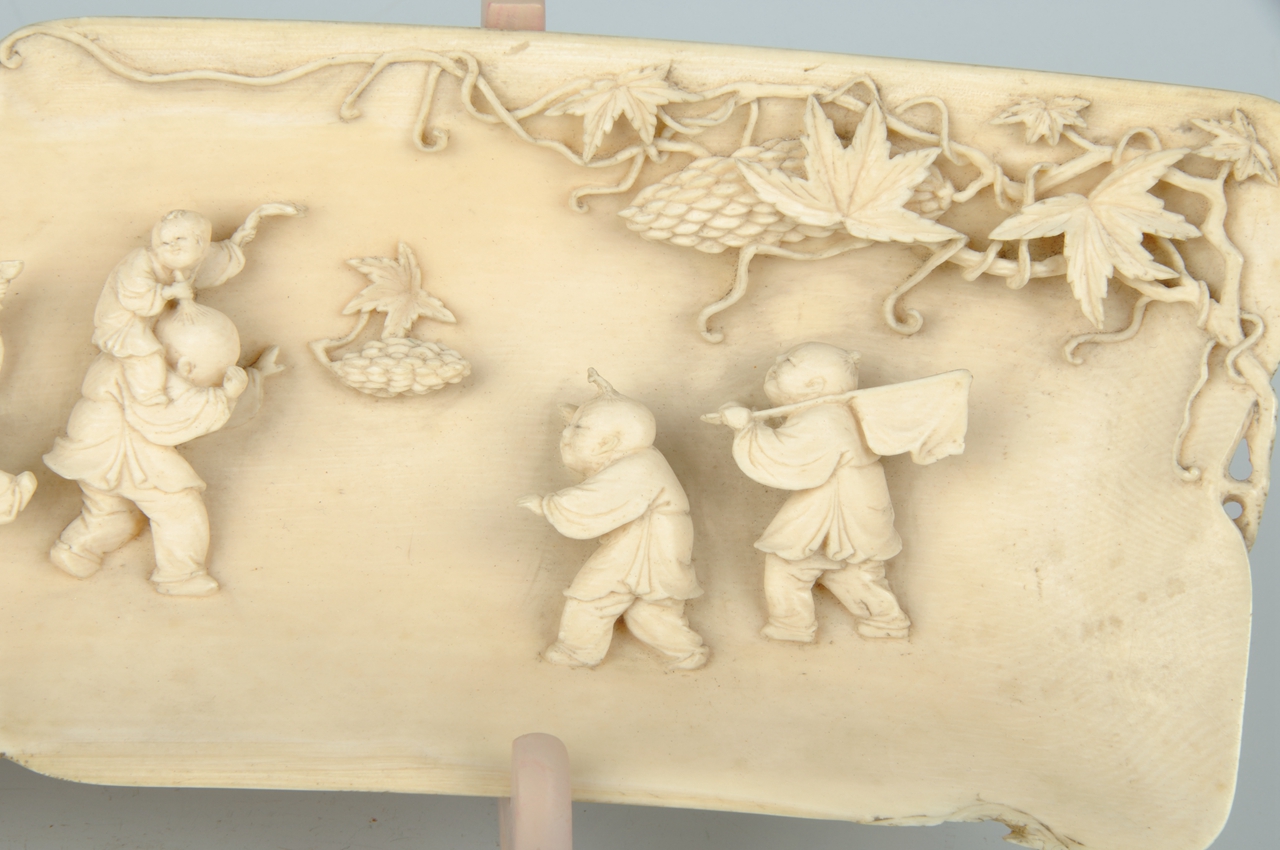 清象牙雕婴戏癞葡萄插片