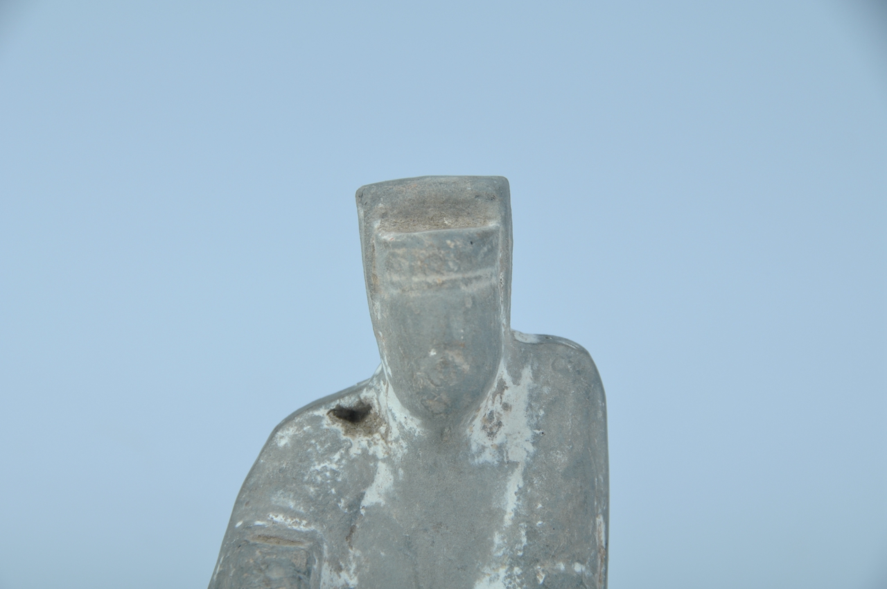 灰陶男坐俑