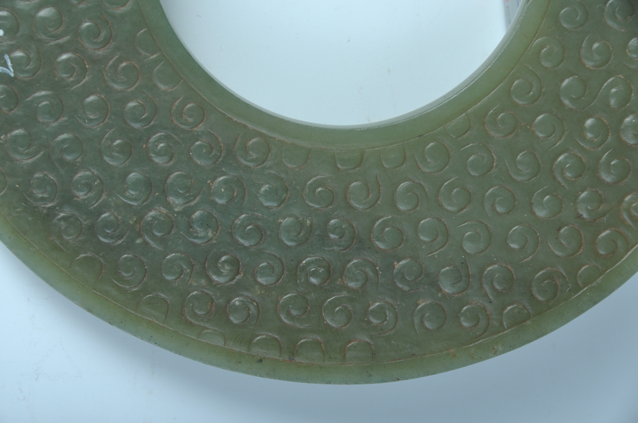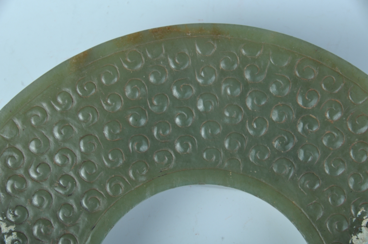 藏品年代:战国藏品尺寸:直径:14.6厘米,厚:0.5厘米藏品质地:碧玉
