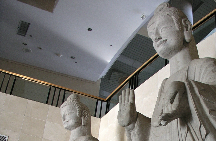 1977年,青岛市人民政府决定,将4尊石造像和两座石碑迁至 院内供国内外广大游客观赏。于是,1979年7月,石佛像被运至原 院内保护,并作为“镇馆之宝”展出。2000年东部新馆正式开放,历经风雨沧桑1500年的丈八佛终于得以在室内保护并展出。目前,作为我国博物馆室内陈列古代石造像,“双丈八佛”可为体量最大,且同殿两佛并立,皆为北魏圆雕,为历史所仅存。