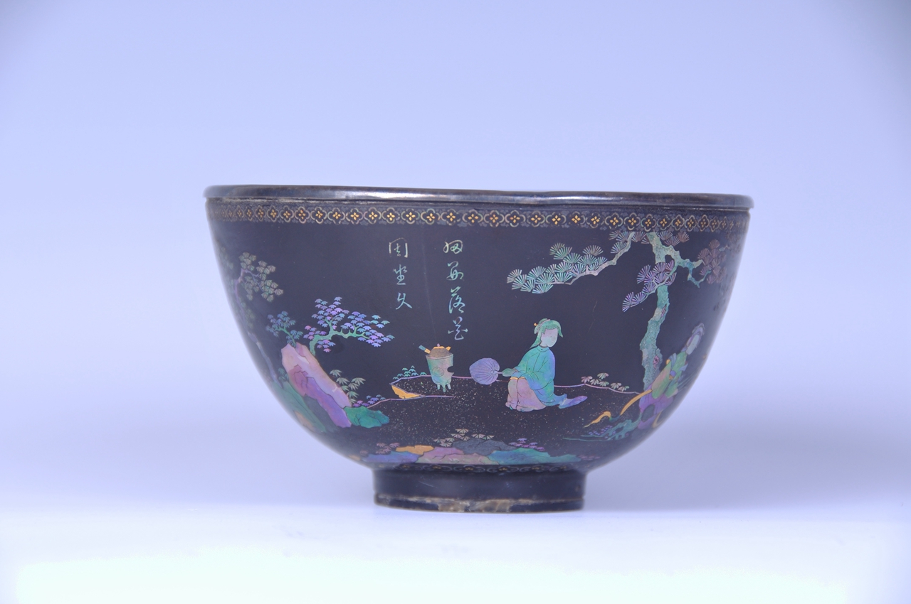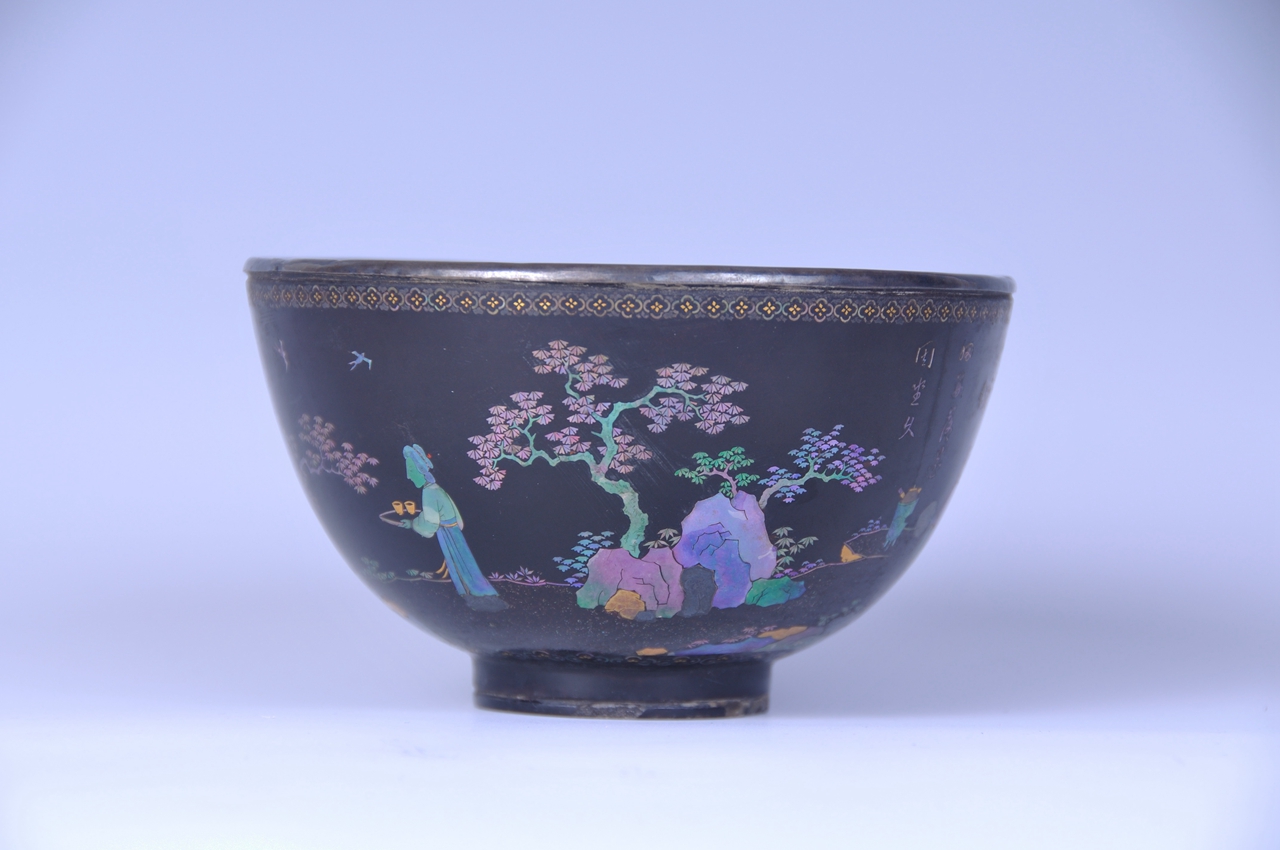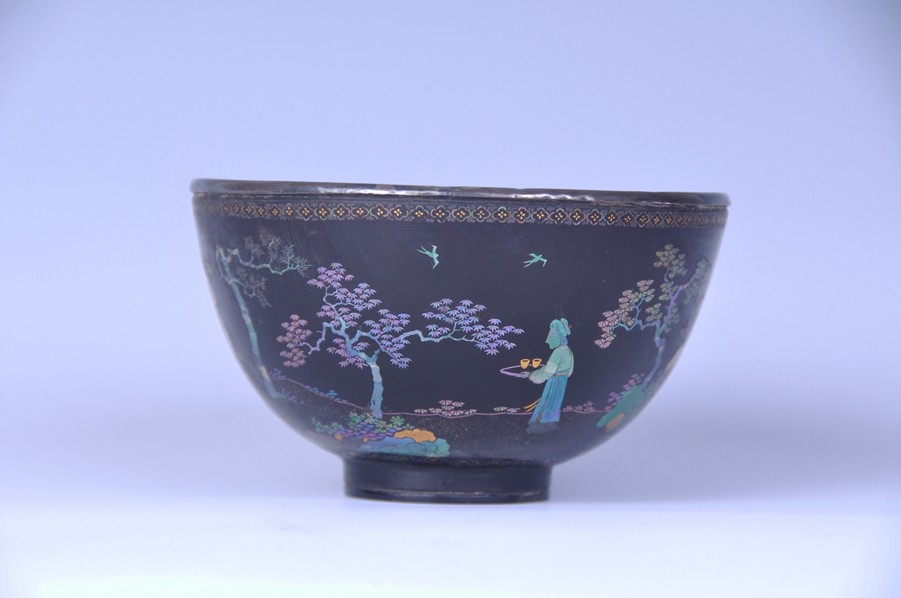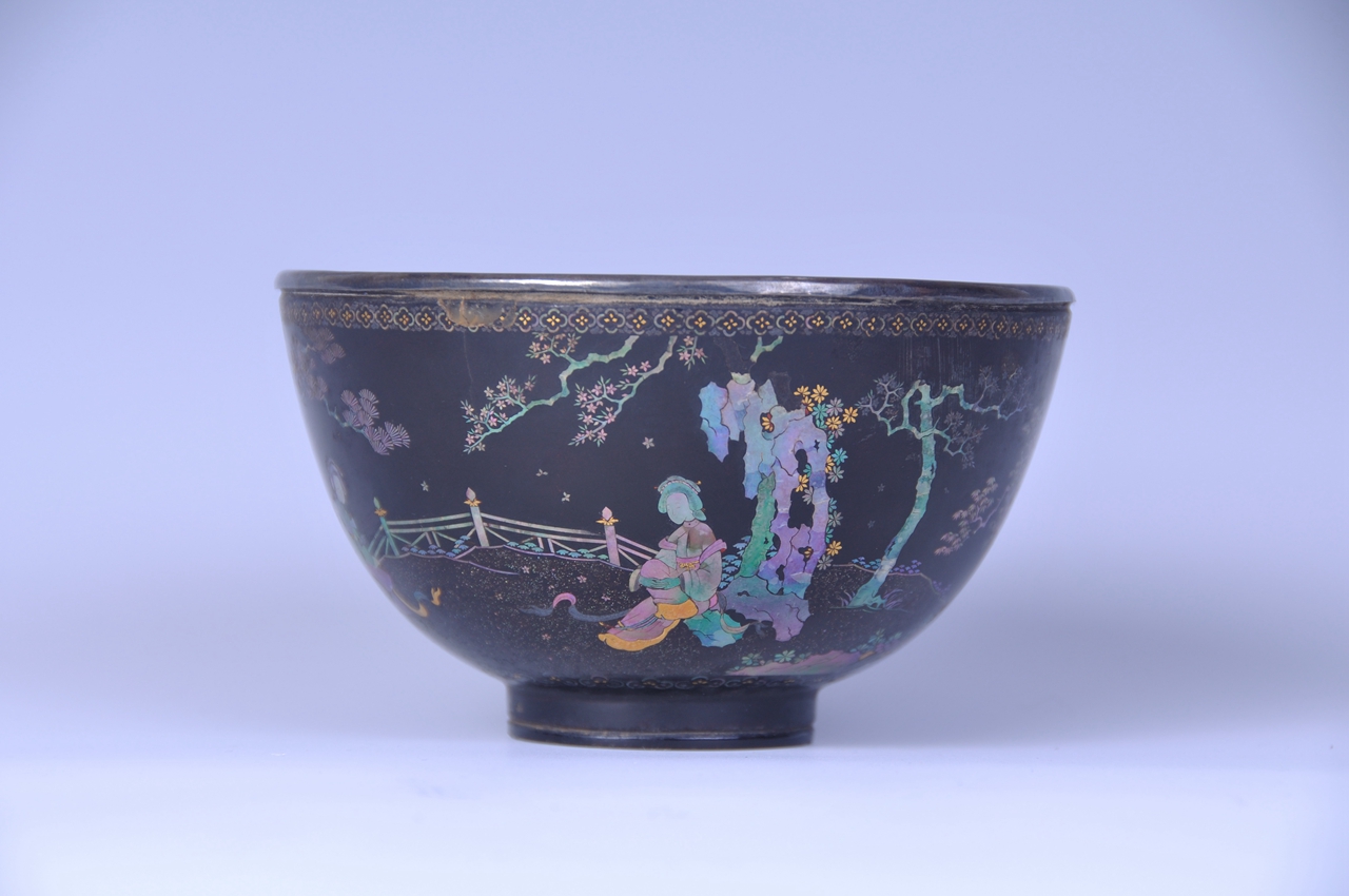黑漆嵌螺钿人物纹碗