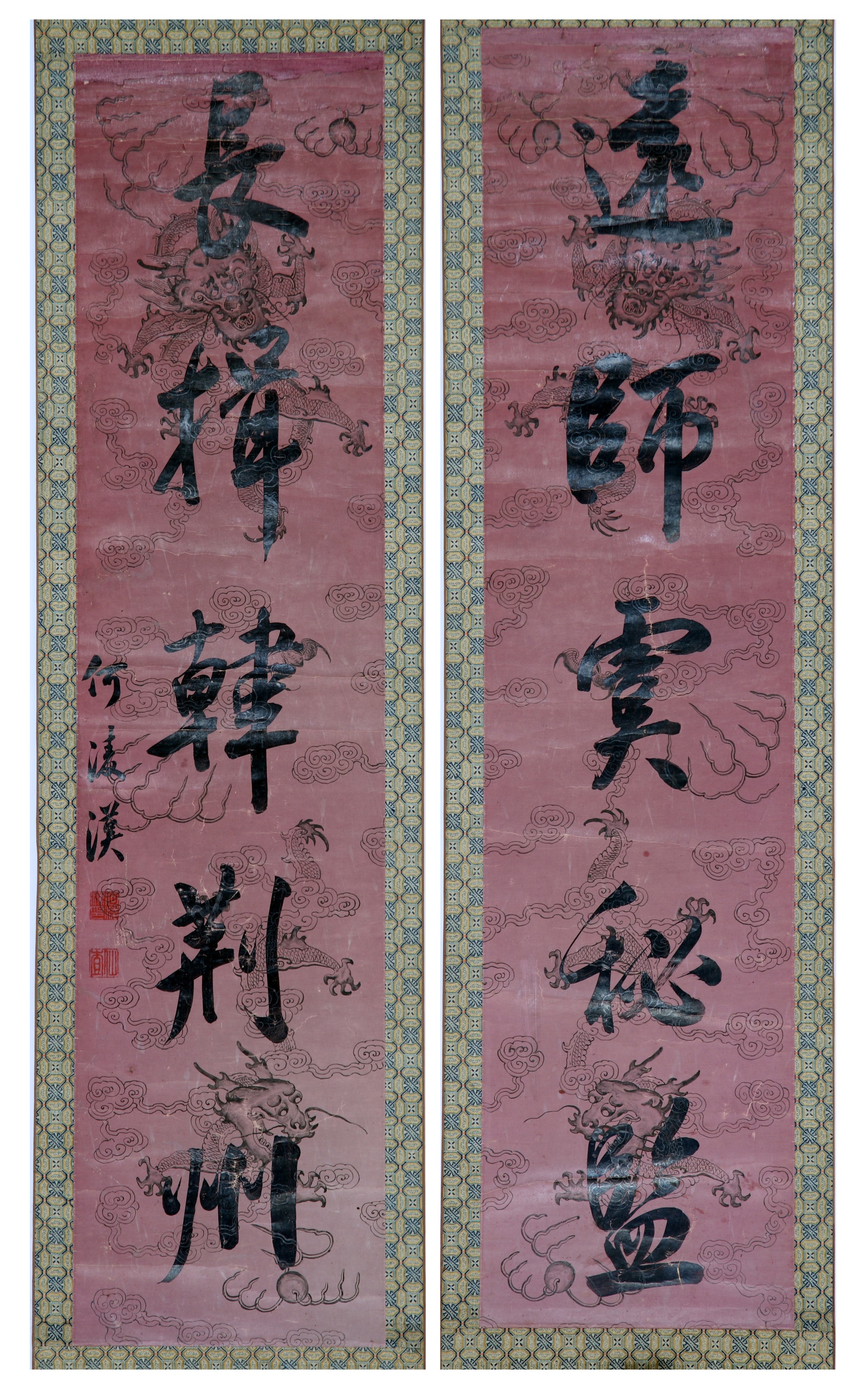 | 1823 | 清赵勇桃红洒金笺隶书五言联 | 清 | 裱纵 150 横37. | 查看 |