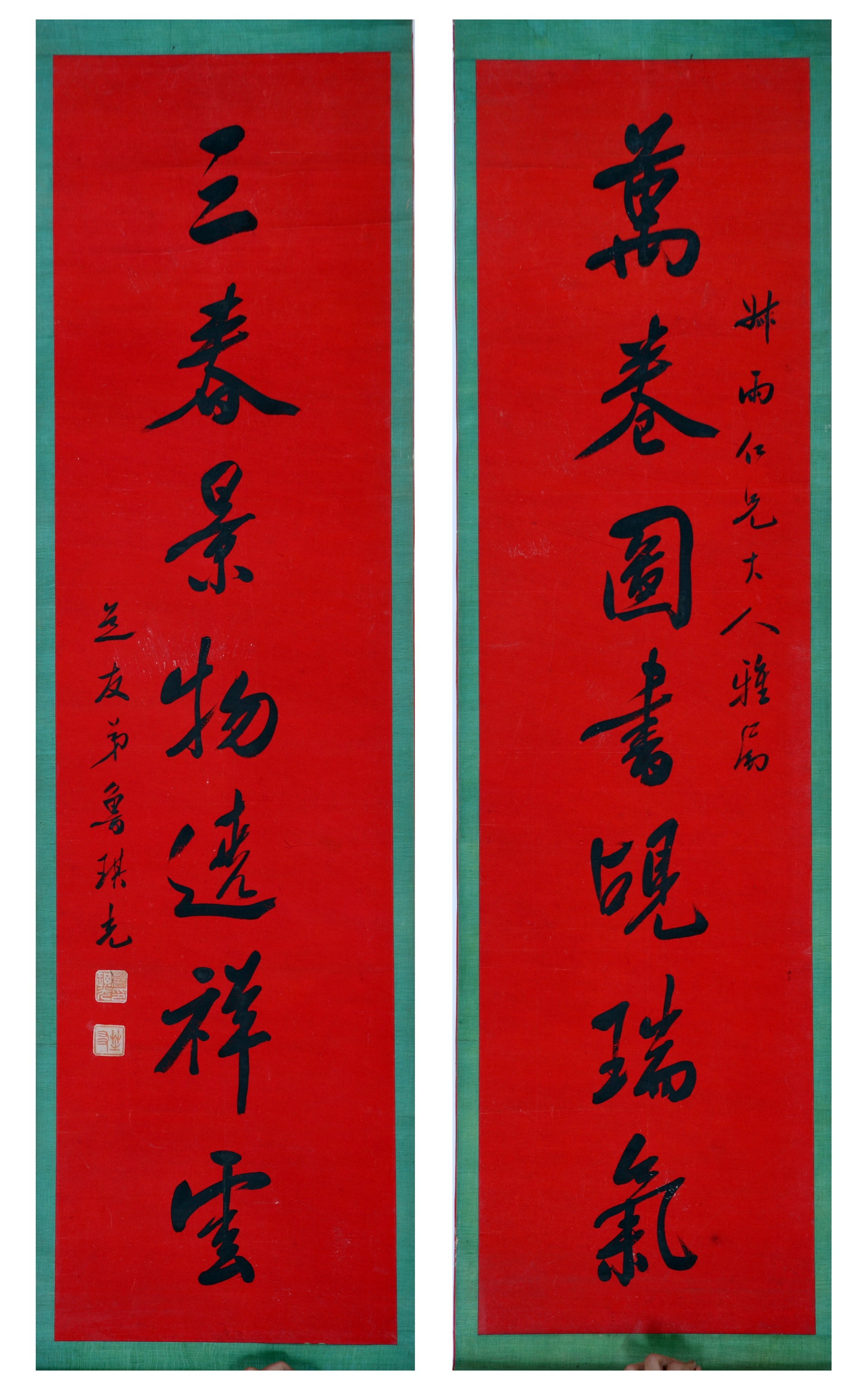 | 1827 | 清鲁琦光红笺纸本行书七言联 | 清 | 通长125.5 通宽33 | 查看 |