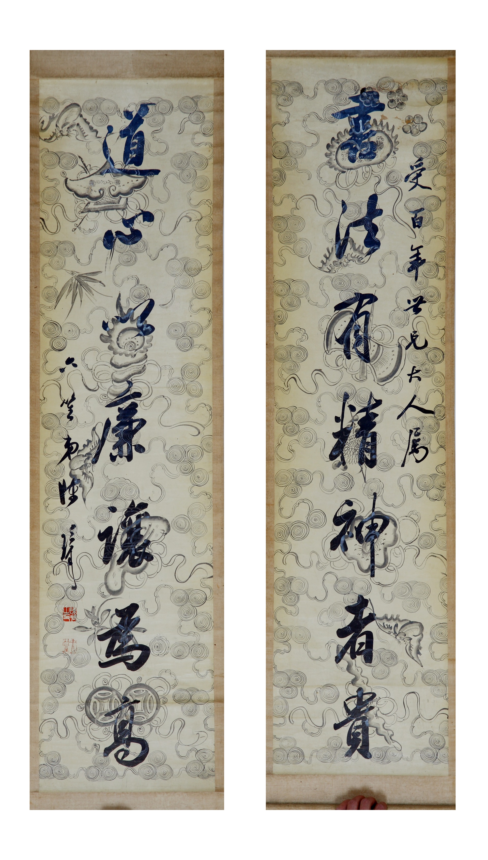 | 1891 | 清贺寿慈纸本行书七言联 | 清 | 通长135.5 通宽31.6 | 查看 |