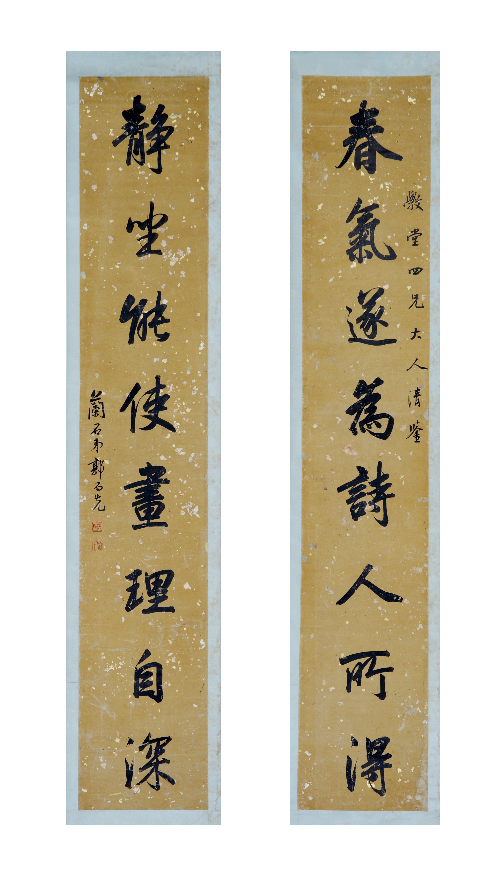 | 1893 | 清张士保黄洒金笺钟鼎八言联 | 清 | 通长116.3 通宽28 | 查看 |