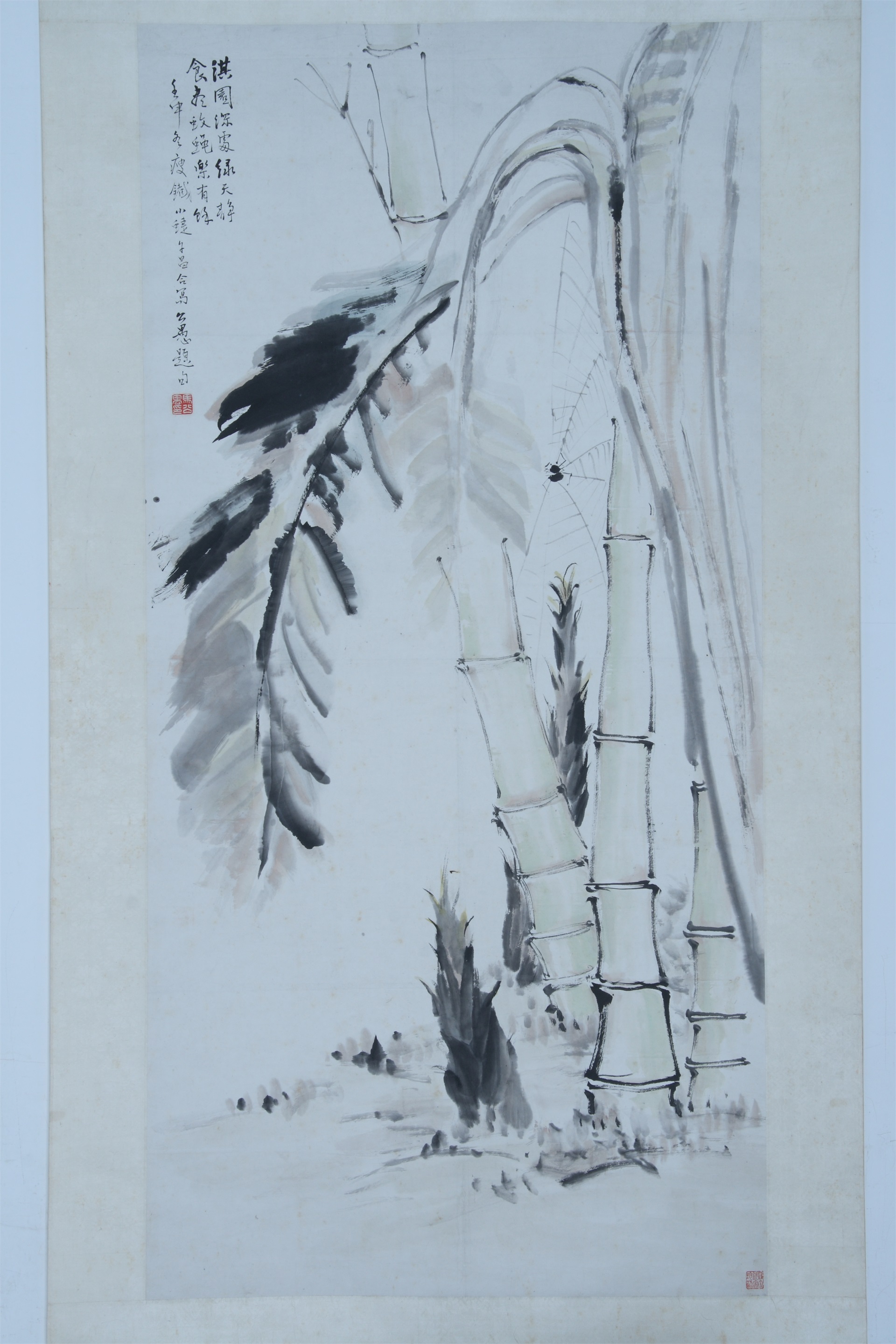| 2159 | 清至民国钱瘦铁、陈小蝶、郑午昌纸本芭蕉竹子蛛纲中堂 | 清至民国 | 通长137.6 通宽67.3 | 查看 |
