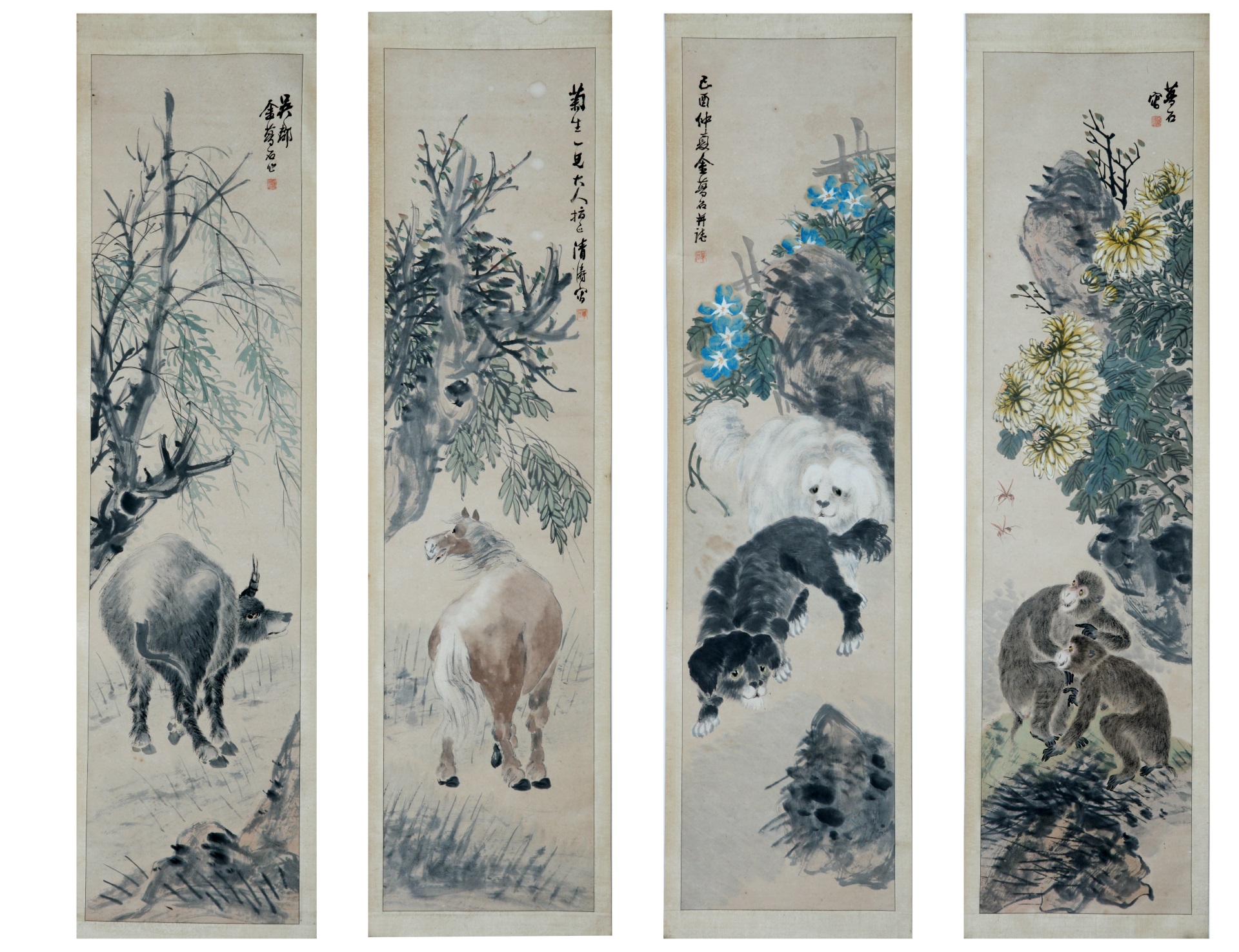 | 2447 | 清至民国金梦石纸本设色走兽图屏 | 清至民国 | 通长132 通宽32 | 查看 |