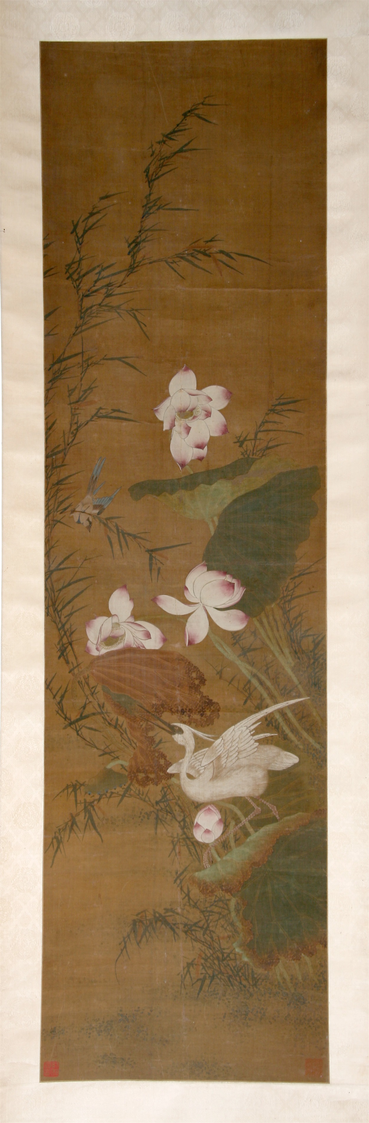 | 329 | 清无款绢本设色工笔荷鹭立轴 | 清 | 通长174.8 通宽48.1 | 查看 |