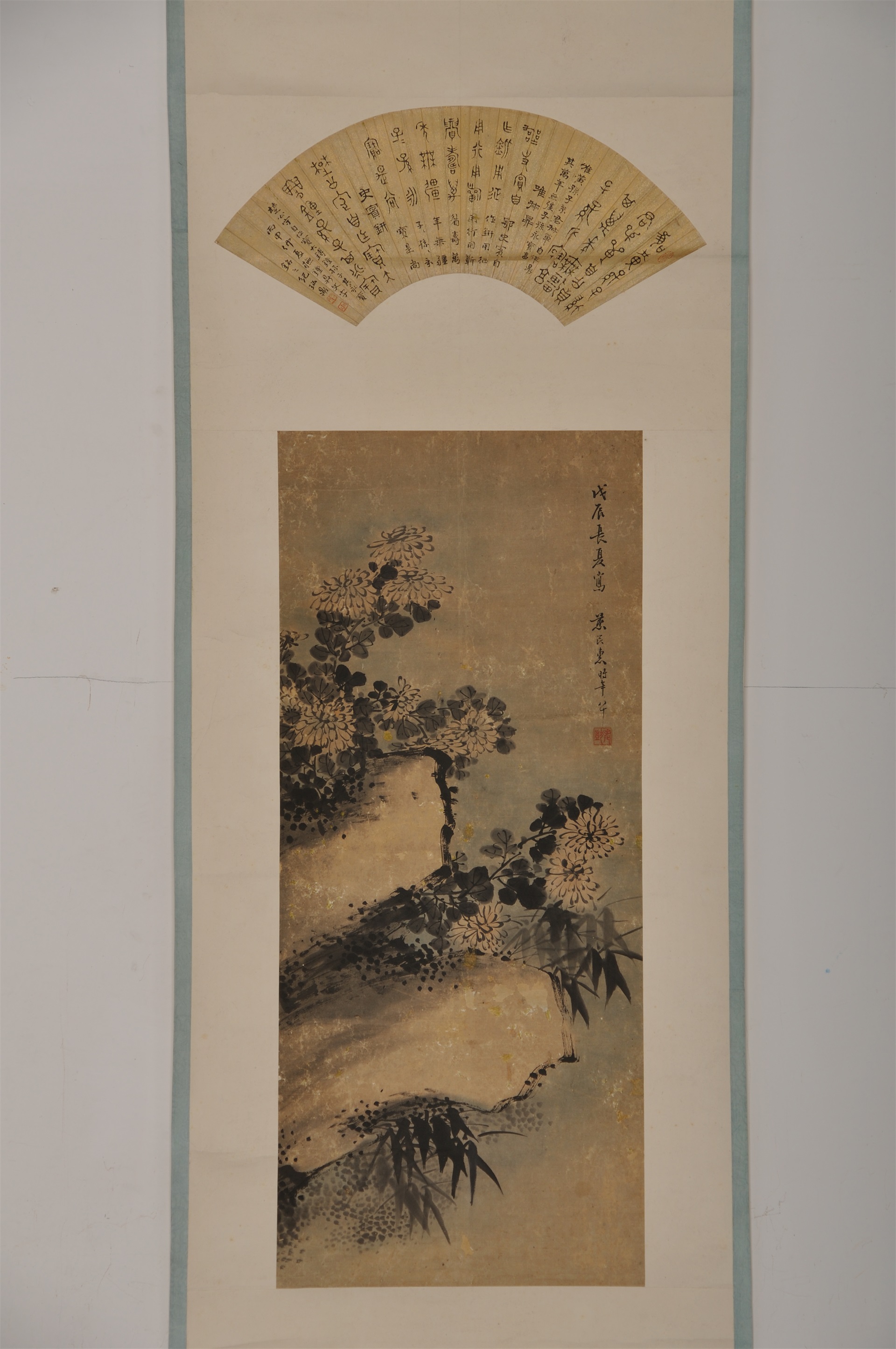 | 1059 | 清纪宝鼎纸本篆书扇面、张兆惠墨菊合装立轴 | 清 | 通长52 通宽52 | 查看 |