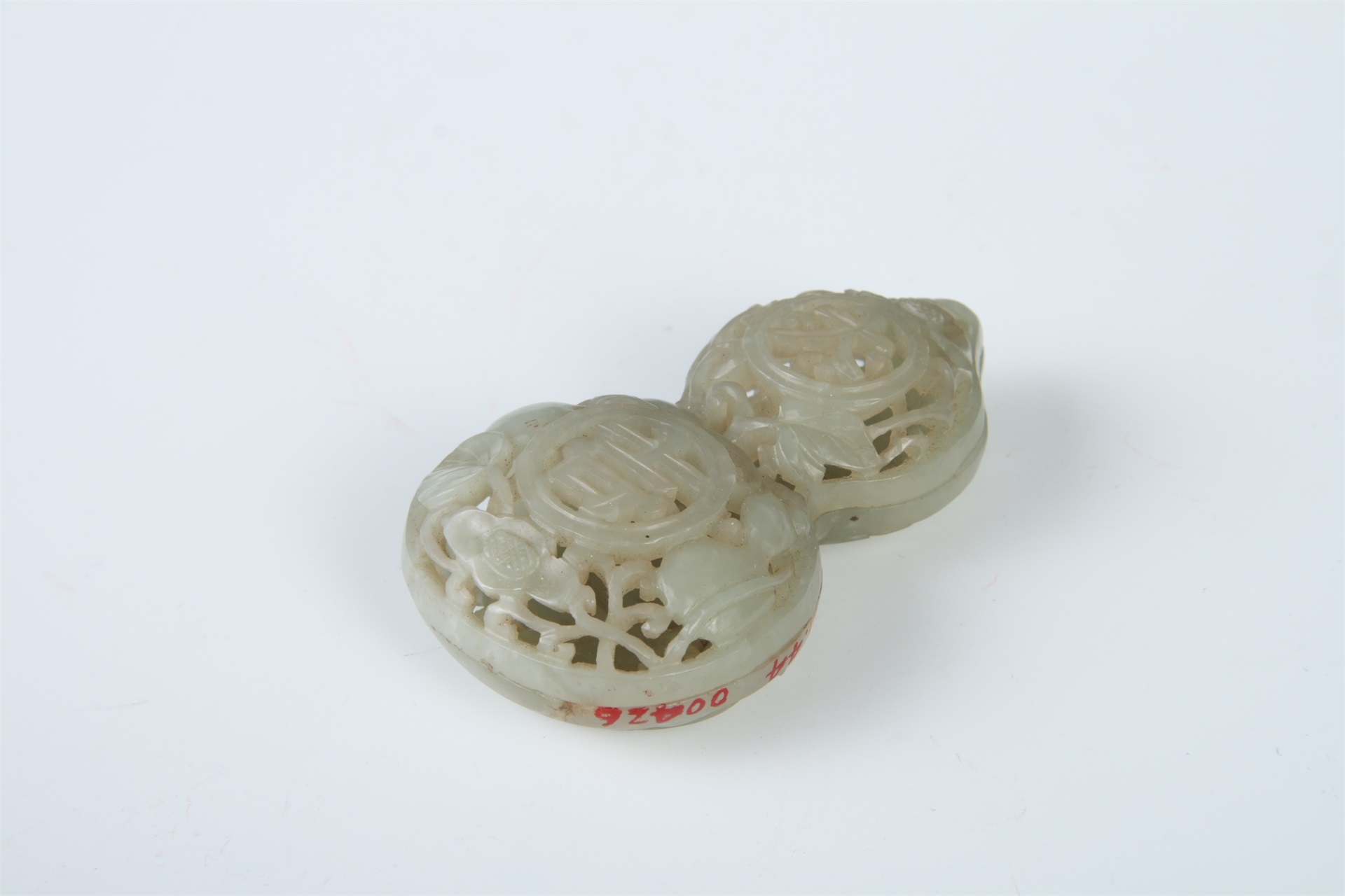 359 清白玉葫芦牌 通长7.4 通宽4.4 小饰件:直径3,2.6,3.3厘米 查看
