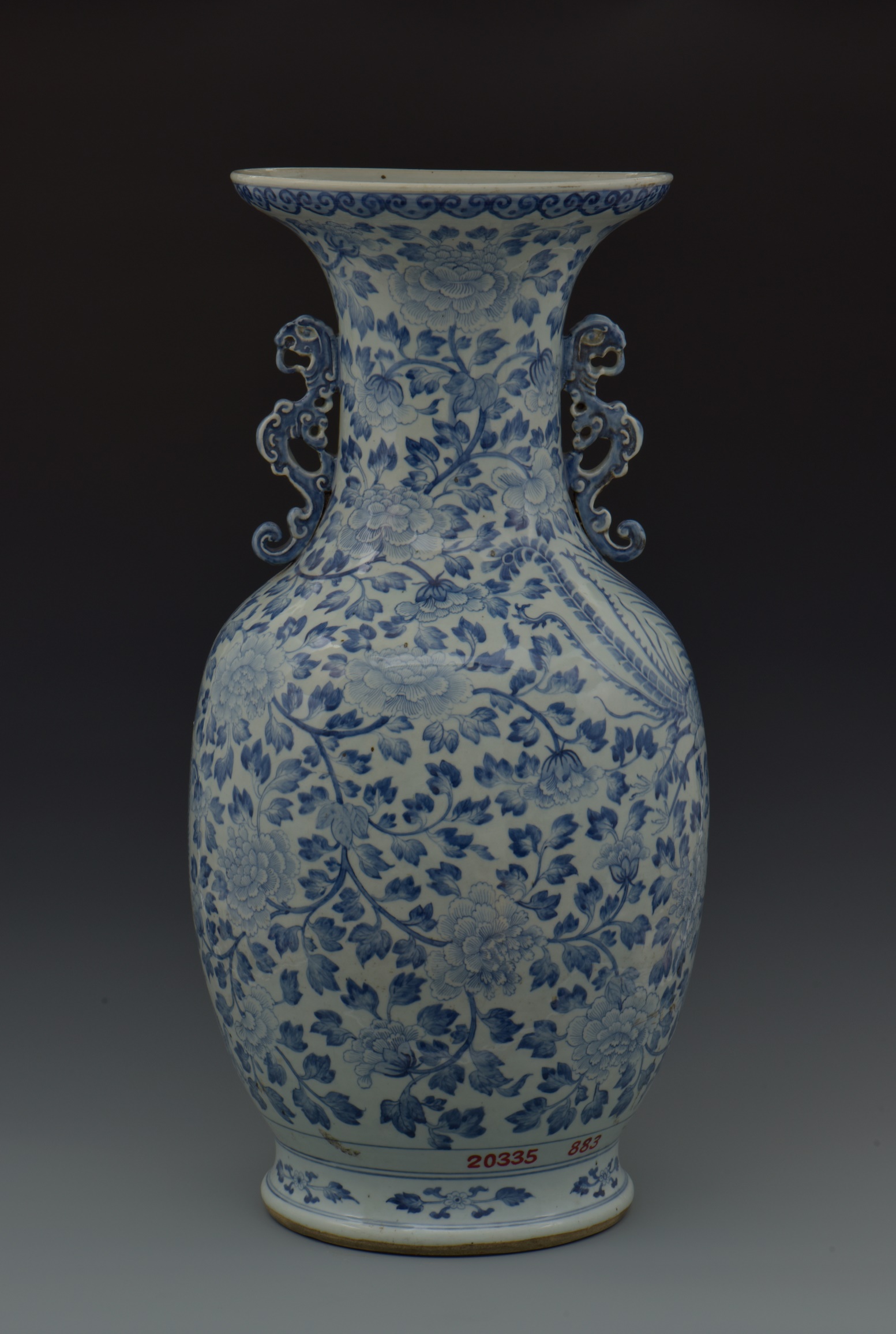 | 293 | 清乾隆青花龙凤牡丹纹大瓷瓶 | 清 | 通高78口径32.5厘米 | 查看 |