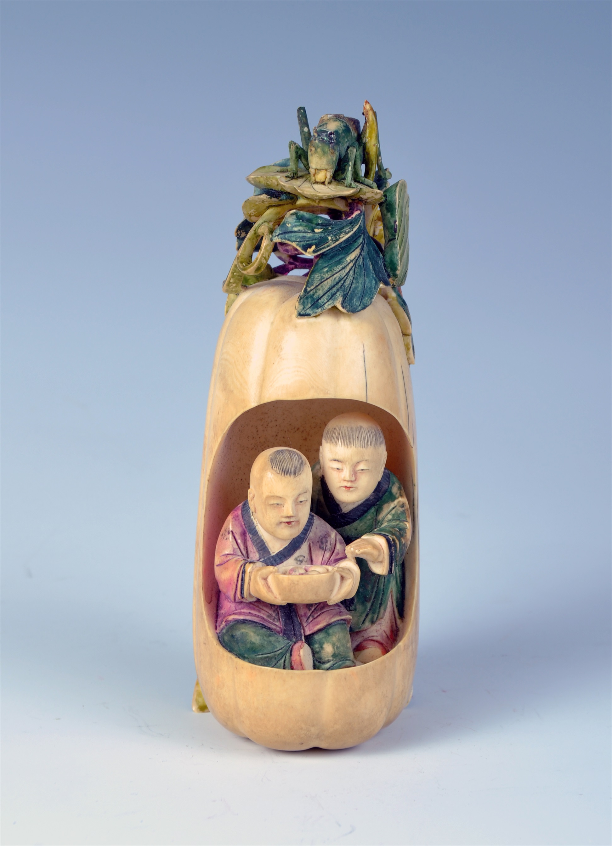 13 清象牙雕婴戏癞葡萄插片 通长30 通宽9 查看