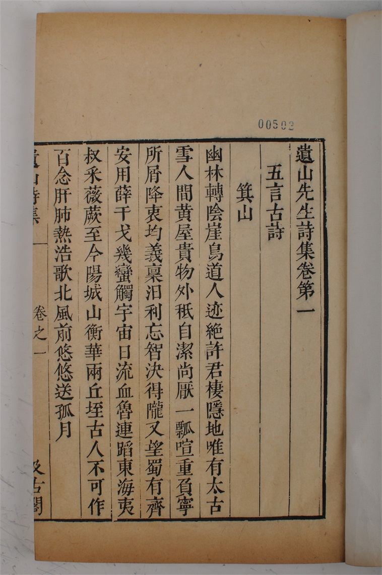 | 392 | 明遗山先生诗集二十卷刻本 | 明 | 通长27 通宽17.5 | 查看 |