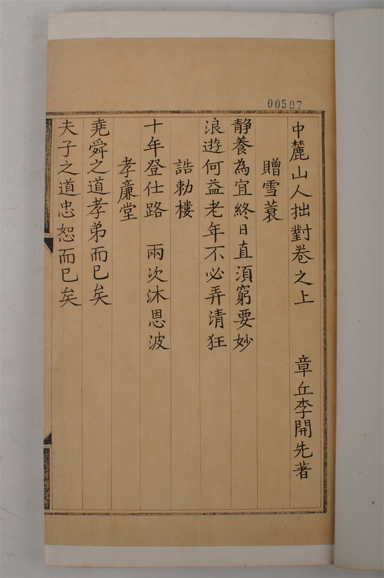 | 395 | 明嘉靖中麓山人拙对三卷刻本 | 明 | 通长28 通宽17.5 | 查看 |