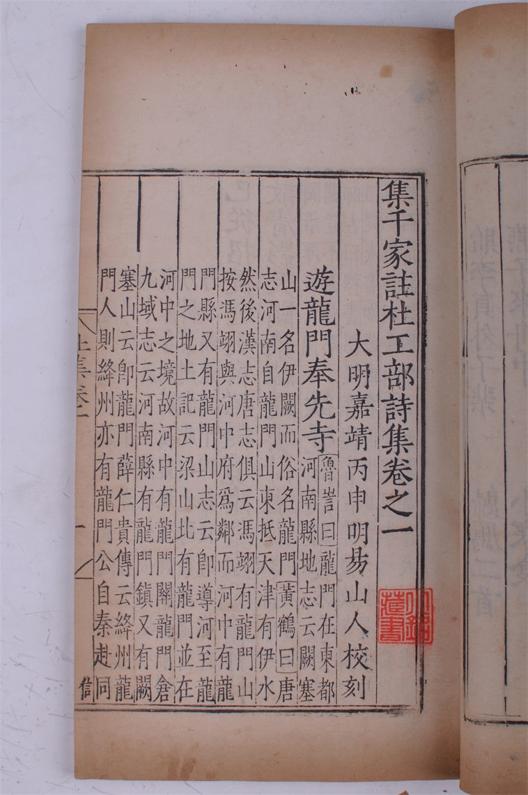 | 43 | 明嘉靖十五年集千家注杜工部诗集二十卷杜工部文集二卷集千家注杜工部诗集附录一卷刻本 | 明 | 通长31.8 通宽19.3 | 查看 |