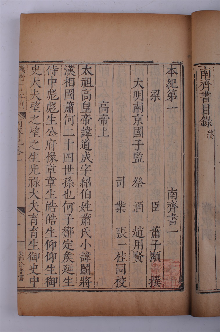 | 125 | 明万历三十三年南齐书五十九卷刻本 | 明 | 通长28.5 通宽17.2 | 查看 |