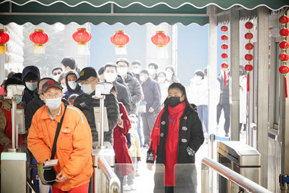 大年初四上午,观众们伴着暖阳纷至沓来,入口处观众络绎不绝,馆内气氛热烈。新年特展《牛气冲天:辛丑生肖…