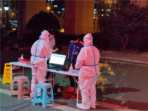 浮山路街道新河东社区工作人员提前近2个小时就位,做好检测物资配备、人员分工等工作,细致的流程、明确的分工合作让核酸检测变得更加高效。九水街道延川路社区的志愿者们一大早就投入到防疫战斗中去,一直忙碌到夜晚。