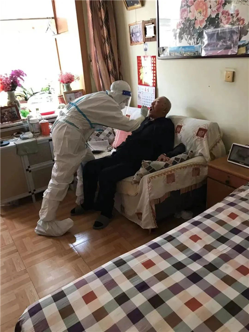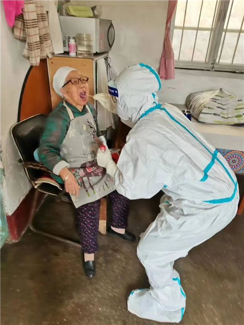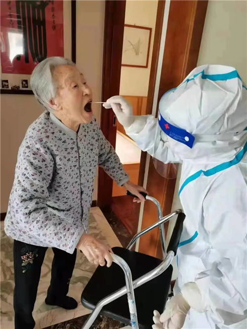 考虑到辖区高龄老人、重症患者等特殊人群,兴城路街道、湘潭路街道各社区联系医护人员,上门入户做核酸检测。
