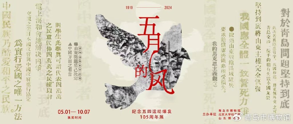 联合北京大学校史馆和山东博物馆举办的《五月的风——纪念五四运动爆发105周年展》正在展出中。本期,策展团队与您共同回顾一段反抗斗争的历史,凝聚奋进力量!